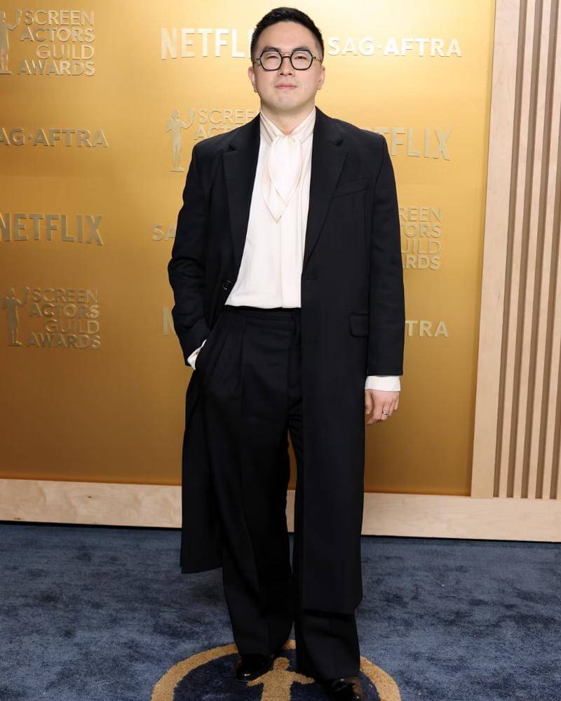 Aktor "Wicked" ini tampak sangat anggun dalam balutan jas hitam rancangan Ami Paris. Ia mengenakan kemeja berwarna krem dengan dasi ascot, yang membuat busananya tampak sangat bergaya dan modern.