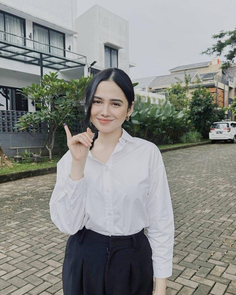 Syifa Hadju mengikuti terlibat dalam pemilihan umum presiden di tahun 2024 ini. Dengan atasan putih dan bawahan hitam. ia melangkah ringan ke TPS.