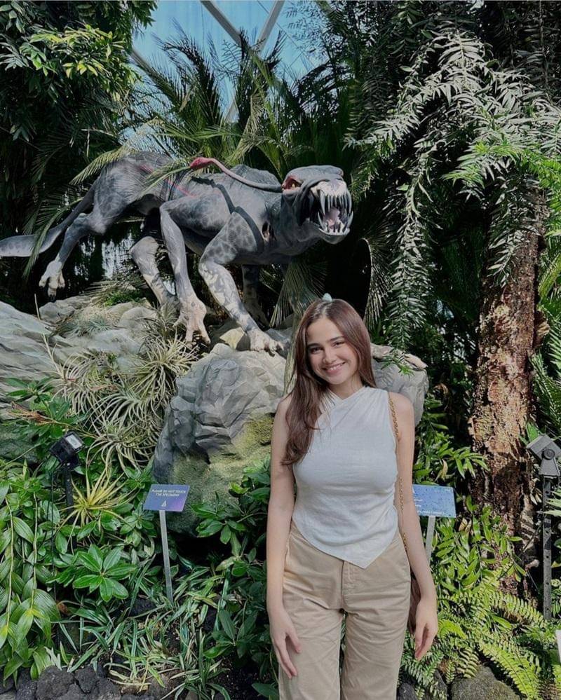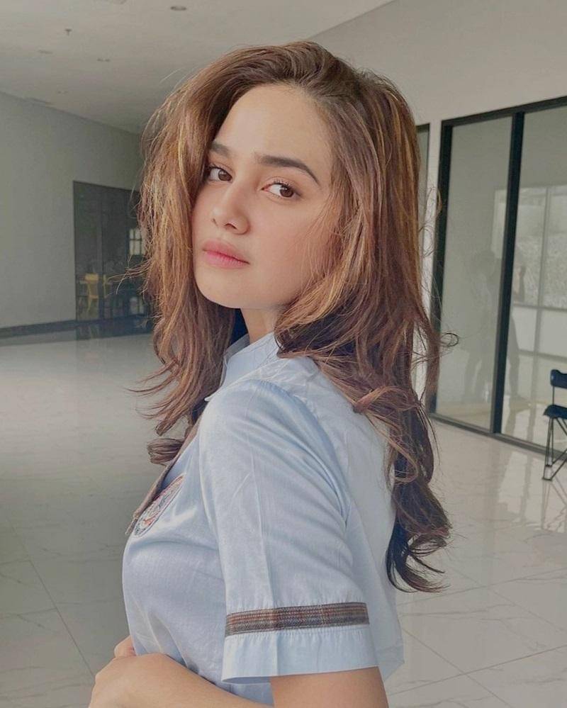 Saat melakukannya, ia mengenakan makeup tipis yang tidak terlalu mencolok namun tetap memberikan kesan yang cantik dan segar.
