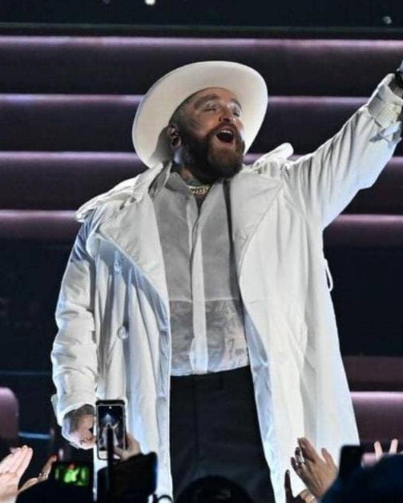 Teddy Swims tampil memukau sebagai pengisi acara di MTV EMAs 2024. Penampilannya terlihat elegan dengan balutan jas putih yang dipadukan dengan topi lebar senada. Dalaman putih transparannya yang menyerupai kemeja dihiasi kalung emas yang menambah pesona penampilannya di panggung bergengsi ini. Penampilan Teddy semakin lengkap dengan celana berbahan kain tebal berwarna hitam yang membuatnya terlihat sempurna.