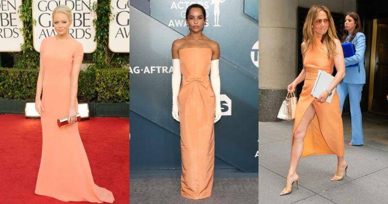 Mama penasaran nggak sih, kira-kira seperti apa penampilan para artis hollywood dengan dress berwarna Peach Fuzz?
