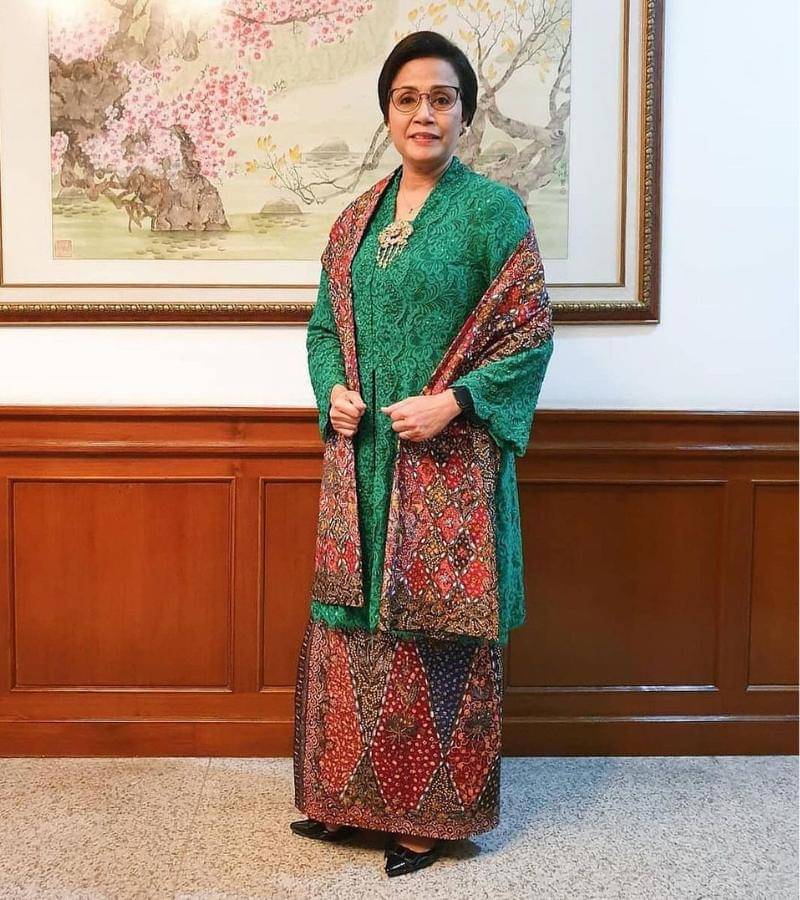 1. Mengenakan Kebaya Kartini Nusantara berwarna hijau zamrud, Sri Mulyani tampil cerah