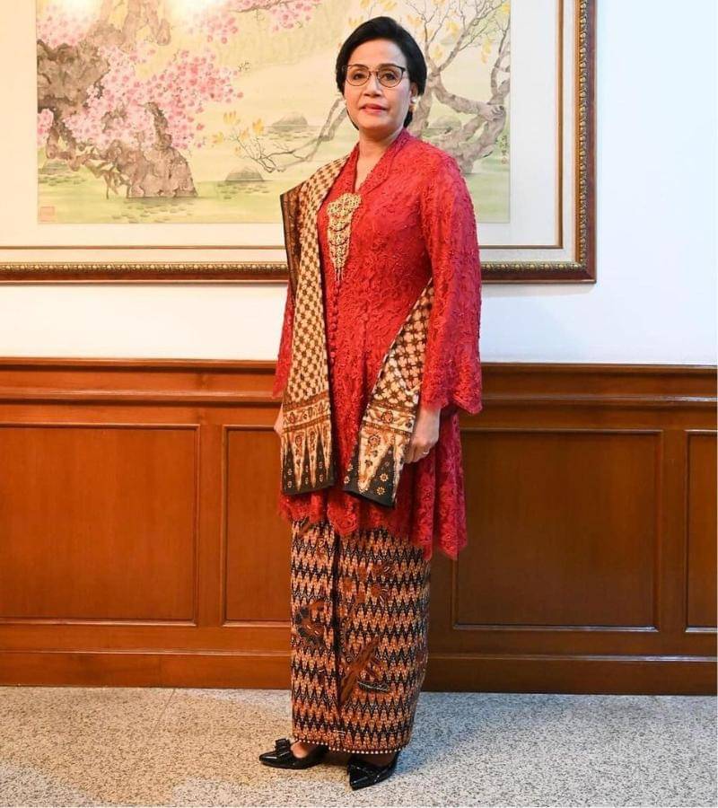 Kebaya Kartini Nusa yang dikenakan Sri Mulyani tidak hanya memikat banyak pasang mata karena warnanya yang menonjol.