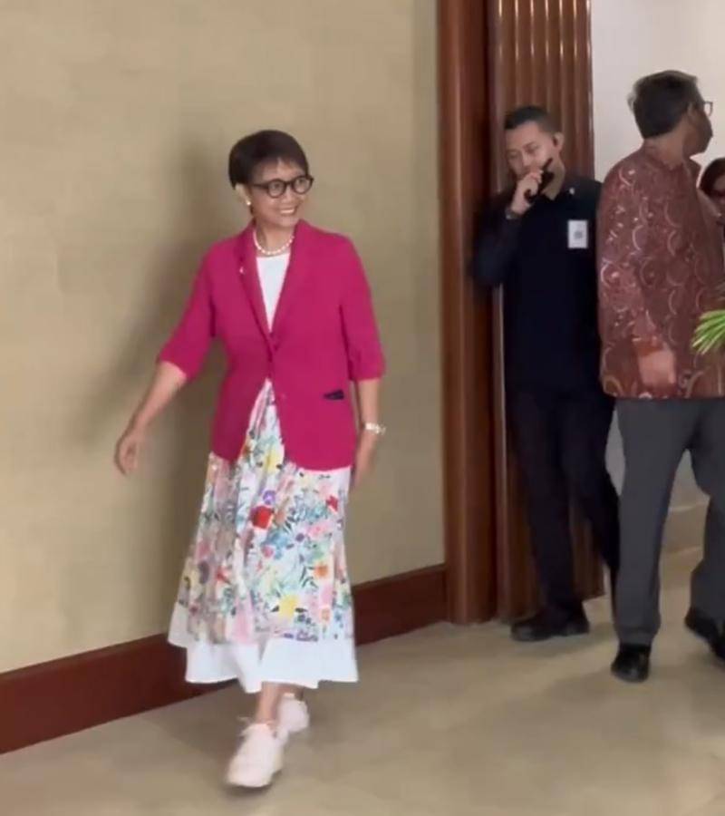 Dengan memilih setelan tersebut, Retno Marsudi menunjukkan keahliannya dalam memilih pakaian yang sesuai untuk setiap kesempatan.