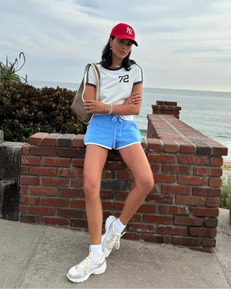 Ketika berpakaian di musim panas kamu harus bisa menyeimbangkan antara kesenangan dan kemewahan. Padukan keduanya dengan blus yang nyaman, celana pendek denim, dan sepatu merah mencolok.