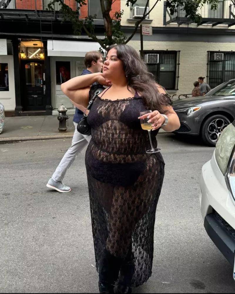 Padukan gaun hitam berenda yang lembut dengan lingerie yang serasi. Tambahkan tas tangan yang tak lekang oleh waktu.
