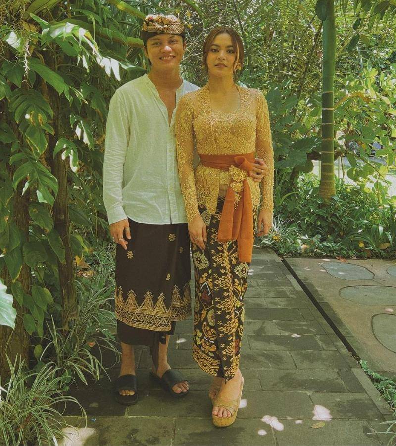 Berlibur ke kampung halaman Mahalini, keduanya tampil kece saat sedang mengenakan busana tradisional adat Pulau Dewata.