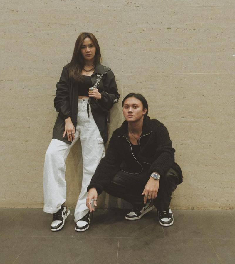 Gemar mengenakan pakaian berwarna monokrom, inspirasi pakaian dari Rizky Febian dan Mahalini yang satu ini menciptakan tampilan outfit yang santai namun tetap serasi.