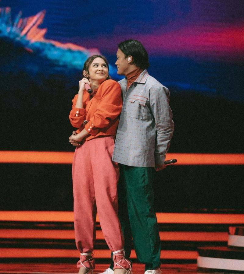 7. Gaya romantis Rizky Febian dan Mahalini ketika manggung