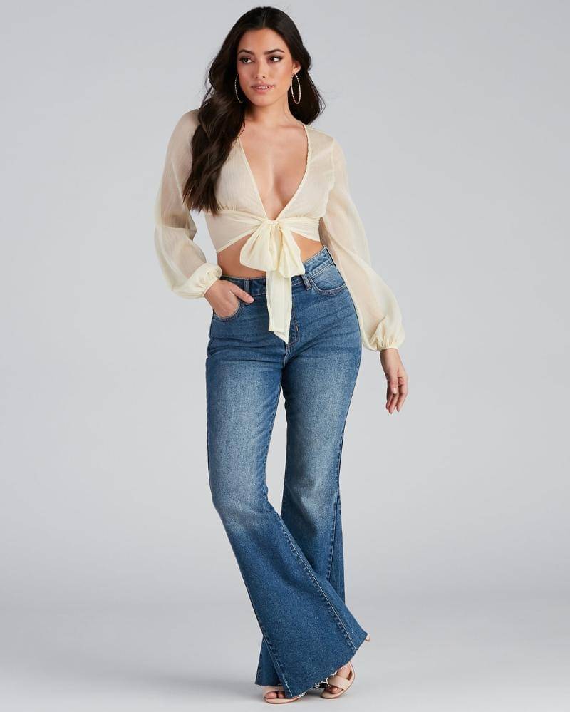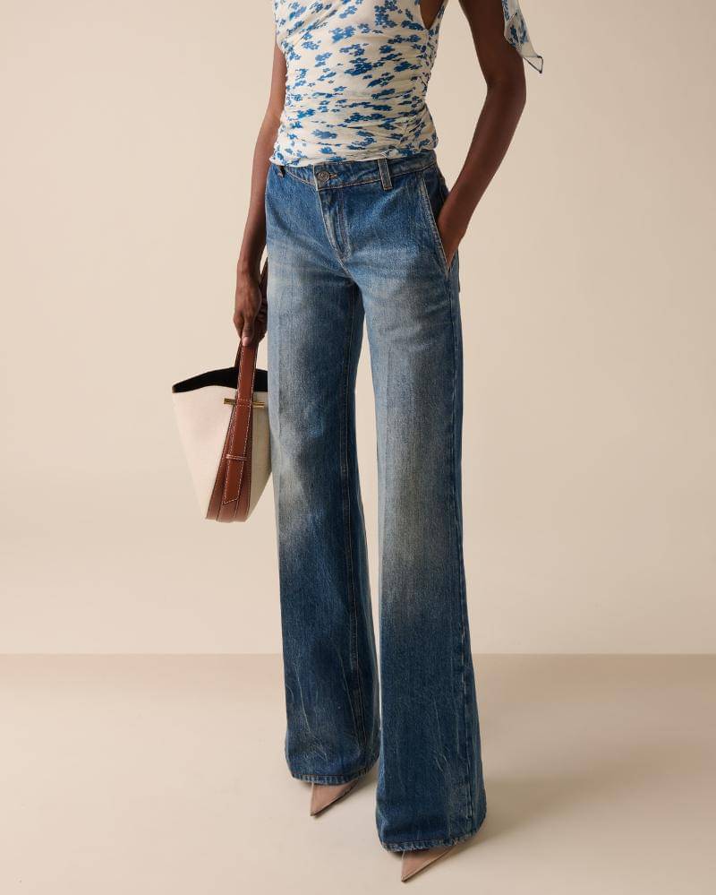 Gaya boho kembali menjadi tren, termasuk celana jeans berpotongan flare! Jika Mama menyukai potongan yang pas dengan sedikit volume, celana jeans ini sangat cocok. Padukan jeans bergaya ini dengan atasan tipis, seperti para model di runway musim semi 2025.