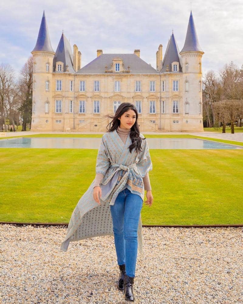 Kemeja putih berlengan panjang dengan aksen kain yang terurai juga menunjukkan betapa fashionable outift Erina yang satu ini. Kamu juga bisa kenakan look yang satu ini ke kantor. Untuk terlihat fashionable, kamu tidak harus selalu menggunakan produk luar negeri, lho.