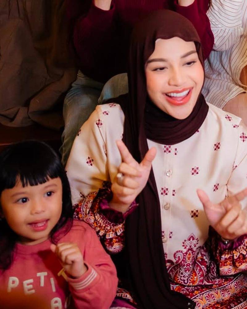 Syifa juga melengkapi tampilannya dengan sepasang anting-anting emas yang besar dan rambut yang diikat serta menyisakan sedikit poni untuk mempermanis tampilannya.