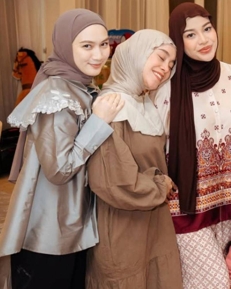 Tak hanya itu, dress Lesti juga memiliki kerah yang berbeda rona warna dengan bagian inti dress, dengan potongan ujung oval. Ini memberikan kesan fun and sweet. Terakhir, Lesti melengkapi busananya dengan hijab berwarna cokelat muda.