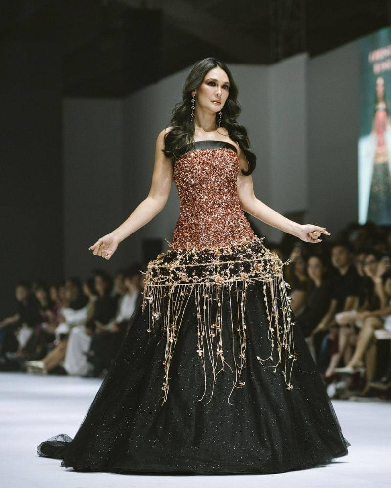 Penampilan Luna dalam gaun ini tidak hanya mencerminkan gaya fashion yang modern, tetapi juga menunjukkan kepercayaan dirinya di atas catwalk. Setiap detail pada gaun tersebut dirancang dengan cermat, menambahkan elemen kemewahan yang membuatnya tampak semakin menawan.