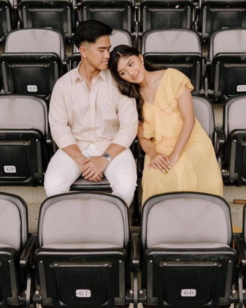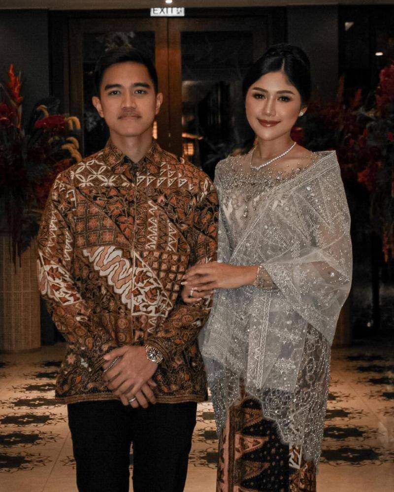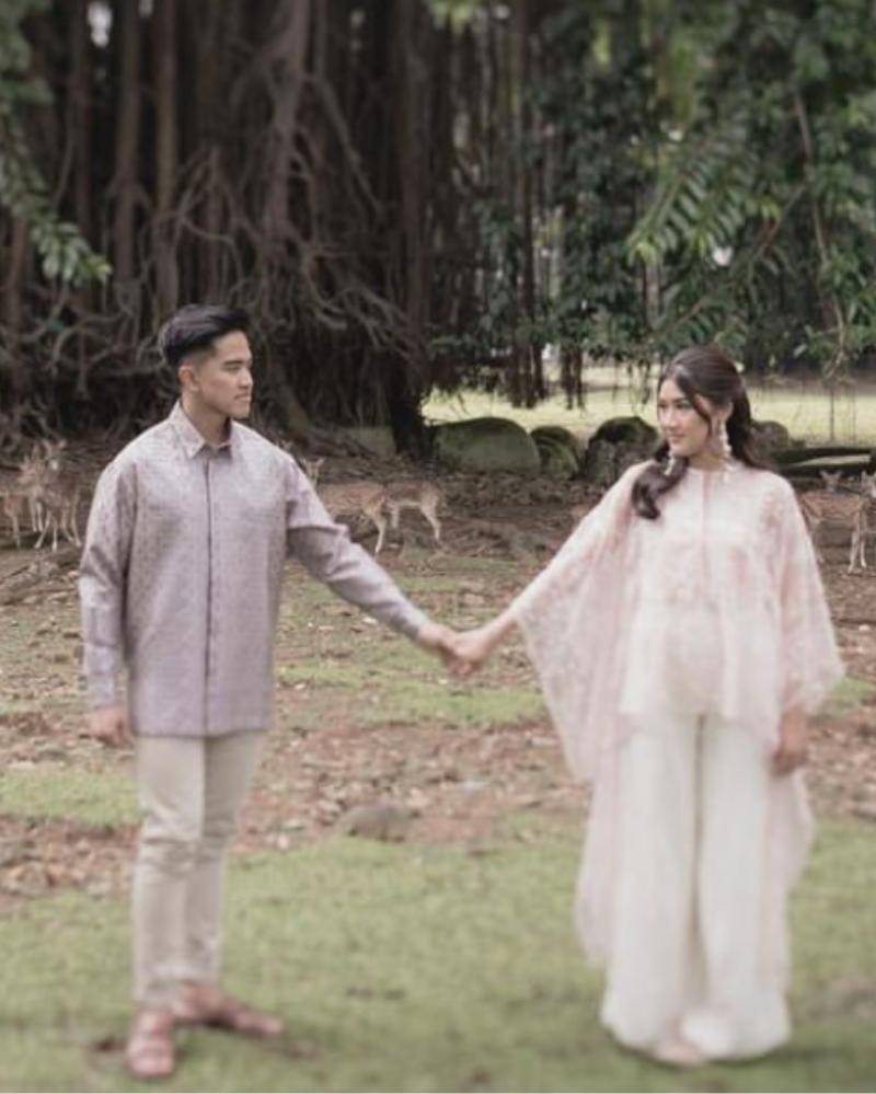Sedangkan, Kaesang memakai kemeja berwarna krem muda yang dipasangkan dengan celana putih. Gaya sederhananya dilengkapi jam berwarna perak, dengan aksen warna hitam.