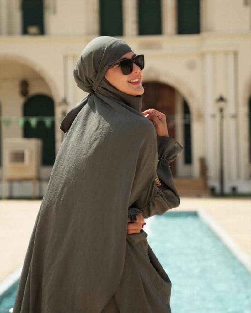 Masih dari perjalanan umrohnya, kali ini Paula mengenakan outfit serba hitam. Ia terlihat mengenakan gamis hitam dengan khimar instan berwarna senada.