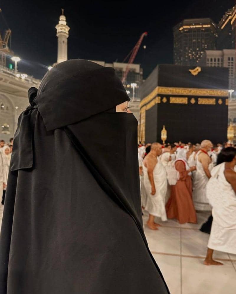 Saat berkunjung ke Masjidil Haram, Paula sempat berfoto di depan Ka'bah. Ia mengenakan hijab dan pakaian serba hitam. Agak berbeda, kali itu ia juga mengenakan cadar atau niqab dengan warna senada.