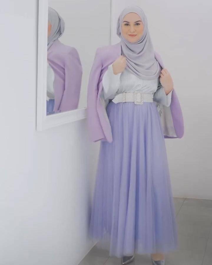 Apakah kamu termasuk yang menyukai gaya fashion bernuansa soft? Irish Bella pernah memadukan kemeja putih dengan tutu skirt berwarna lilac. Ia juga turut melibatkan blazer berwarna ungu cerah yang digunakan sebagai outer untuk membalut tubuhnya.