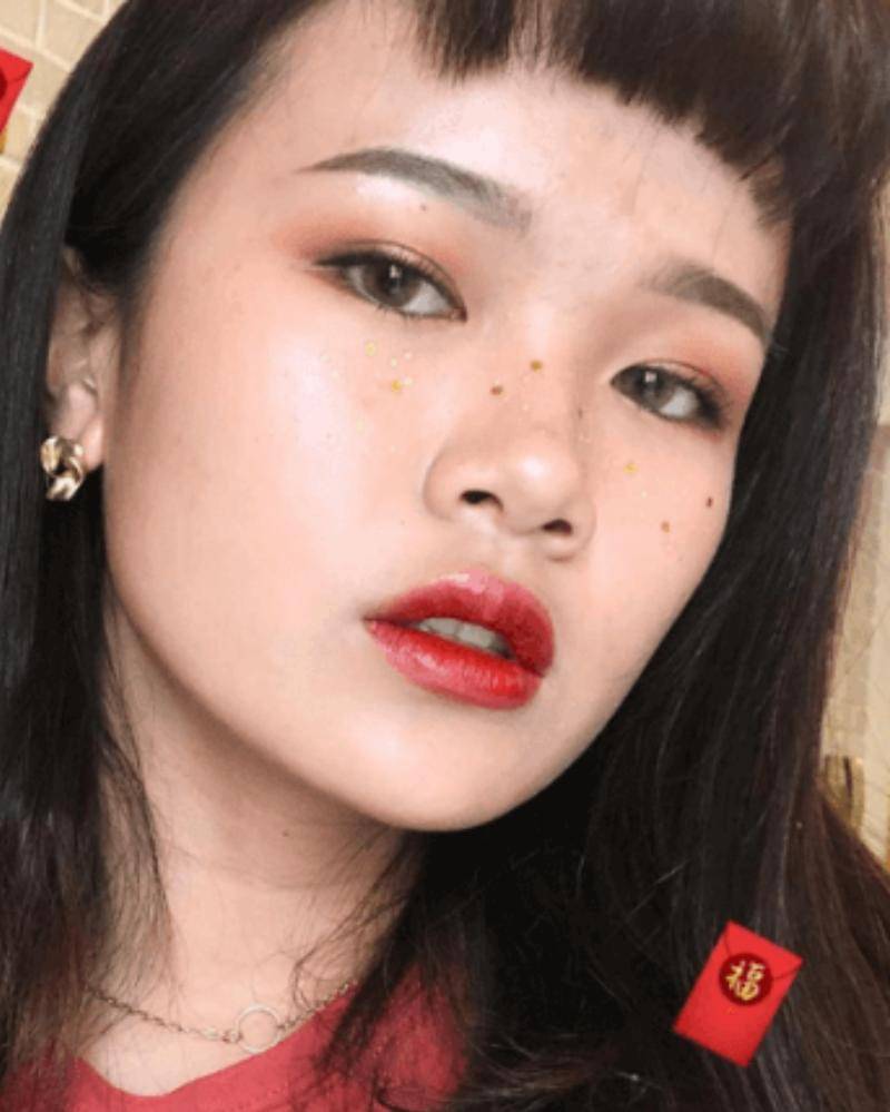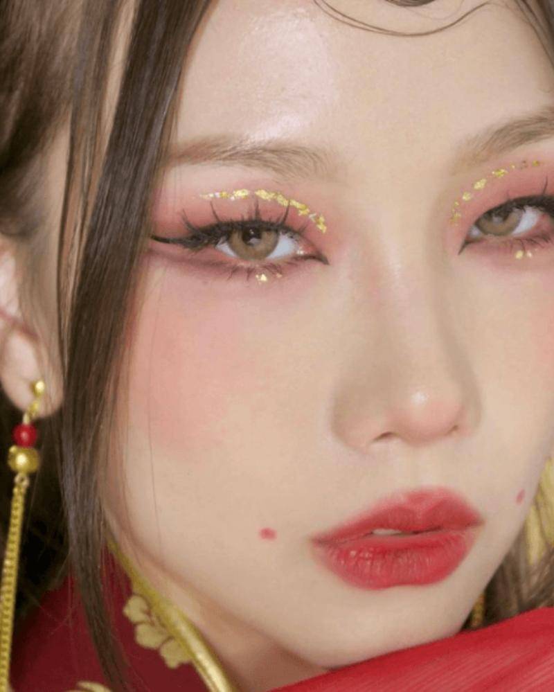 Dapatkan kilauan Tahun Baru Imlek yang memukau dengan riasan yang memadukan keanggunan warna emas dan merah. Eyeshadow emas mengilap, sentuhan klasik lipstik merah, dan pesona ceria seni wajah merah, bisa kamu mainkan untuk menciptakan tampilan makeup yang unik.