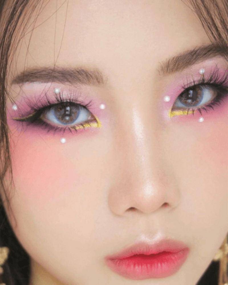 Untuk merayakan Tahun Ular, pertimbangkan tampilan makeup dramatis yang menampilkan seni wajah yang terinspirasi dari ular. Padukan eyeshadow merah muda halus, bersama dengan eyeliner grafis berwarna senada, dan eyeliner hitam dibawahnya.