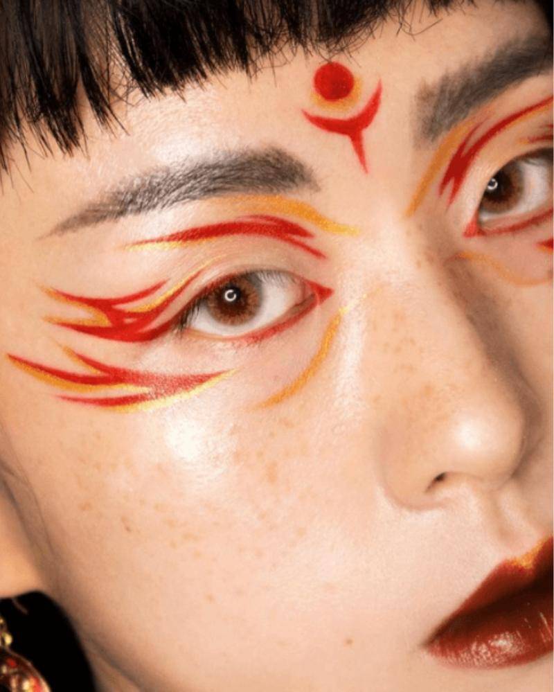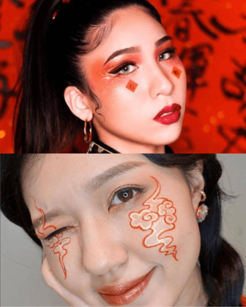 Sertakan dekorasi khas Tiongkok yang khas pada perayaan Imlek satu ini. Seni wajah ini menambahkan kesan fun tapi masih memberikan tampilan elegan. Kedua tampilan ini sangat bergaya dan ideal untuk menyambut Tahun Baru Imlek.