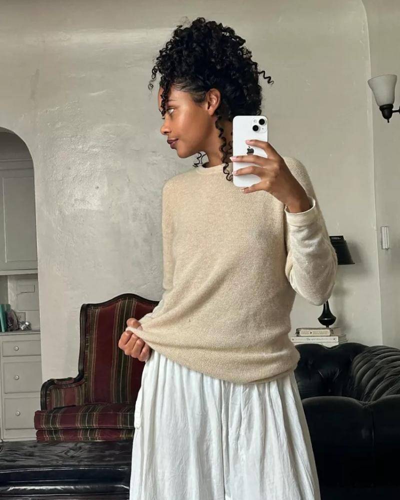 Kasmir bisa menjadi salah satu bahan knitwear yang bisa kamu coba. Lembut, serbaguna, dan cocok untuk dipakai berlapis.