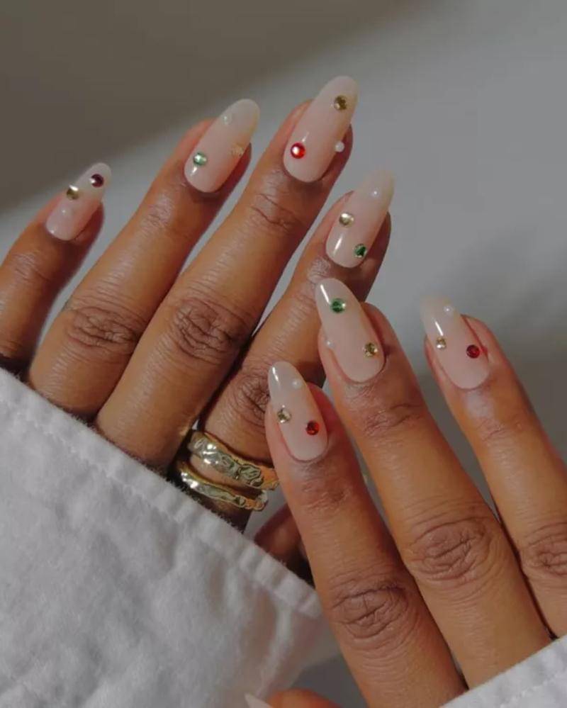 7. Bejeweled milky mani