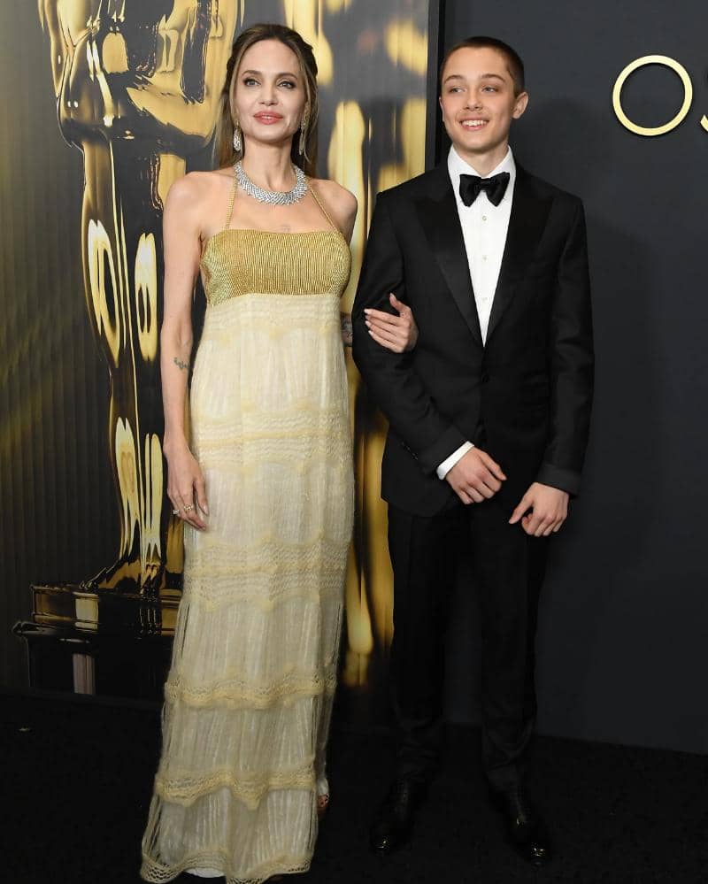 Menghadiri Governor's Awards bulan lalu, Angelina Jolie tampak menawan bersama putranya, Knox Jolie-Pitt, di red carpet. Ia mengenakan gaun vintage dari The Knit Vintage, yang merupakan perpaduan menakjubkan antara gaya bohemian dan glamor.
