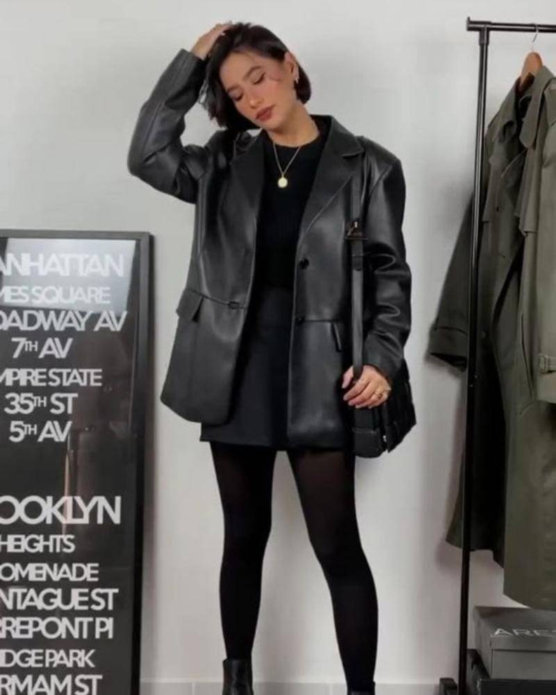 Entah kamu mengenakan jaket, celana, rok, atau sepatu boot, itu bisa jadi pilihan yang bagus. Lengkapi pakaian dengan potongan hitam klasik, perhiasan perak yang mencolok, dan riasan mata smokey.