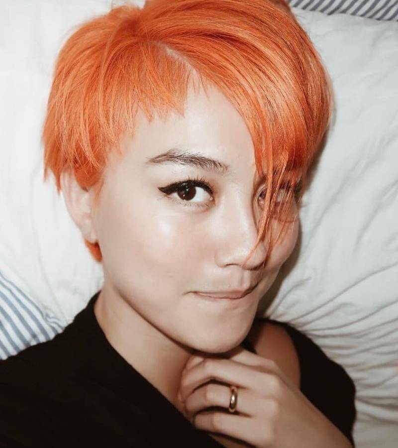 3. Gaya rambut pixie cut Agnez Mo dengan warna terang