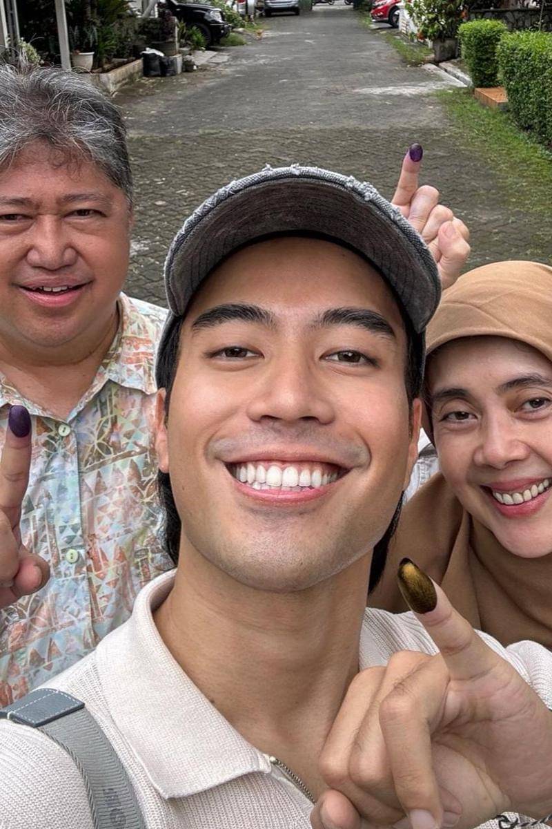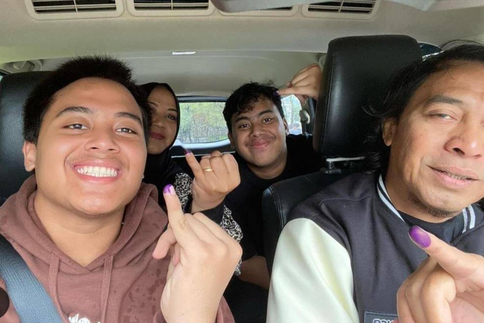 Kali ini Vidi Aldiano bersama keluarga. Mereka juga tampil ikonik di foto selfienya. Ayah, Ibu,dan Vidi mengacungkan jari yang sudah diberi tinta ungu.
