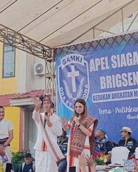 Potret ini diabadikan ketika Selvi Ananda menemani suaminya berkunjung ke Kabupaten Tana Toraja, Sulawesi Selatan (Sulsel). Keduanya tampak menghadiri acara Gerakan Angkatan Muda Kristen Indonesia di Gedung Badan Pekerja Sinode Gereja Toraja.