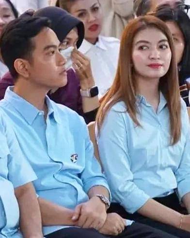 Pada momen selanjutnya, Selvi Ananda lagi-lagi memilih mengenakan kemeja berwarna biru muda yang sejak awal menjadi kemeja khas pasangan Prabowo-Gibran.