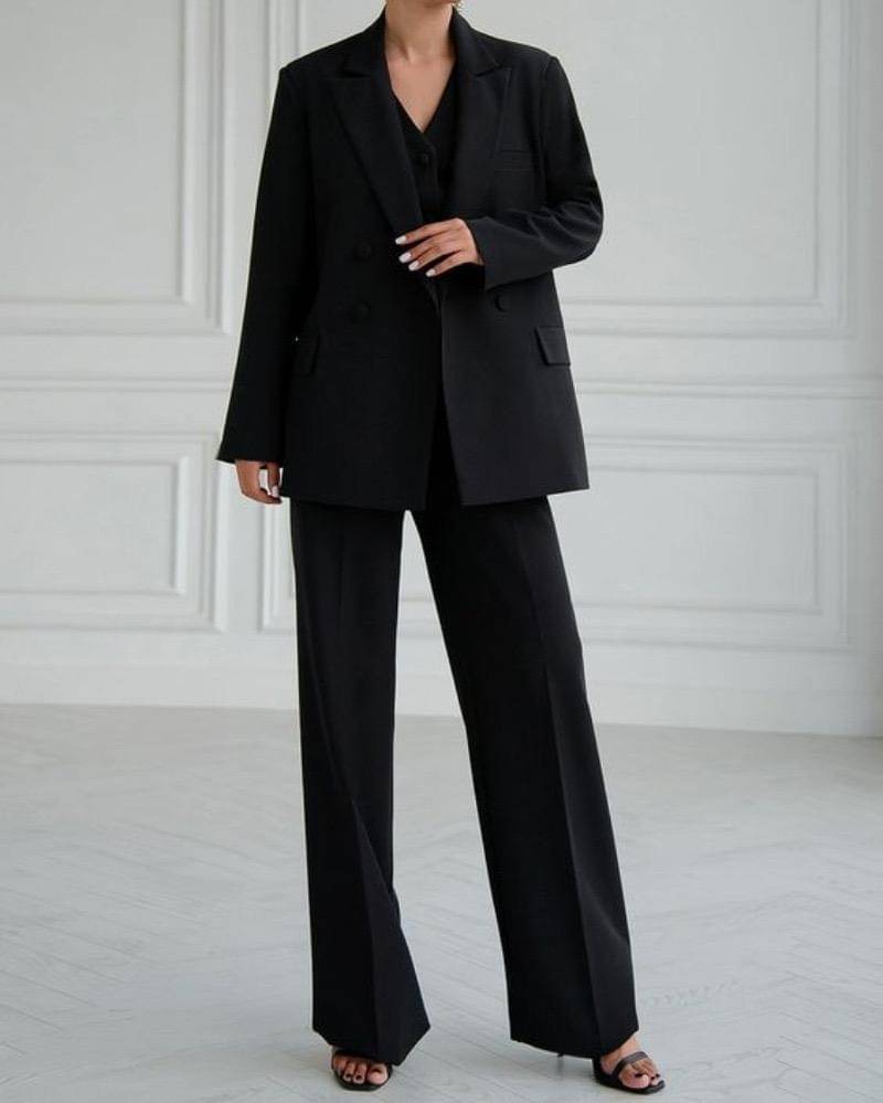 Jika kamu menginginkan lebih perlindungan lebih, blazer berkancing ganda adalah pilihan yang bagus. Gaya ini, biasanya memiliki dua lapis kain di atas perut, sehingga dapat membantu kamu terlihat lebih ramping.