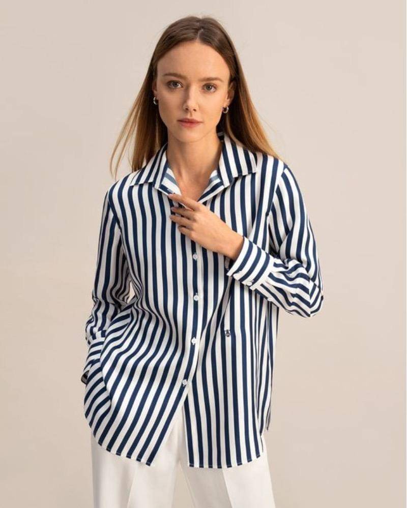 Agar tampak lebih tinggi dan ramping, pilih pakaian dengan pola garis vertikal. Namun, ketebalan dan jarak garis-garis juga penting. Garis-garis lebar dapat membuat Mama tampak lebih berisi.