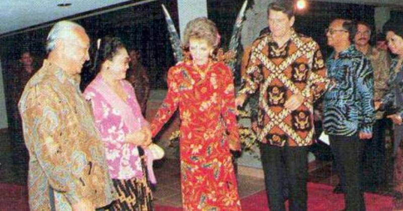 Presiden Indonesia ke-2, Presiden Soeharto seringkali memakai batik dalam berbagai acara penting. Soeharto bahkan dengan yakin mengenakan batik ketika menghadiri konferensi Perserikatan Bangsa-Bangsa, dan sejak itu, batik menjadi semakin terkait dengan identitas Indonesia.