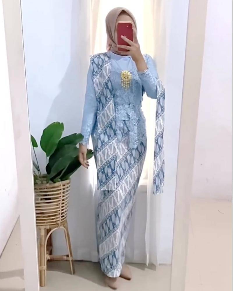 6. Kebaya biru pastel, buat Mama yang ingin terlihat anggun