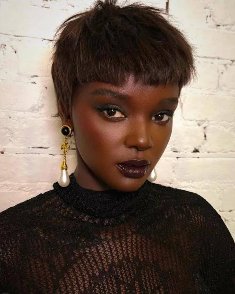 Untuk tampilan yang dramatis dan menawan, cobalah eyeshadow hitam pekat dan lipstik berwarna buah beri tua. Paduan klasik ini adalah pilihan yang tak lekang oleh waktu.