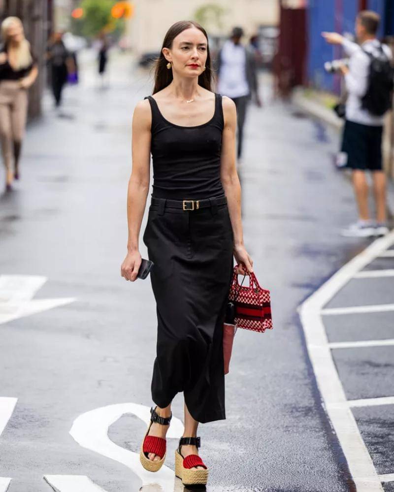 Rahasia capsule wardrobe look adalah memiliki beberapa potong pakaian serbaguna. Pakaian basic, seperti rok midi hitam dan tank top polos, dapat dikenakan sepanjang tahun. Cukup tambahkan atau hilangkan beberapa lapis pakaian untuk menyesuaikan dengan cuaca.