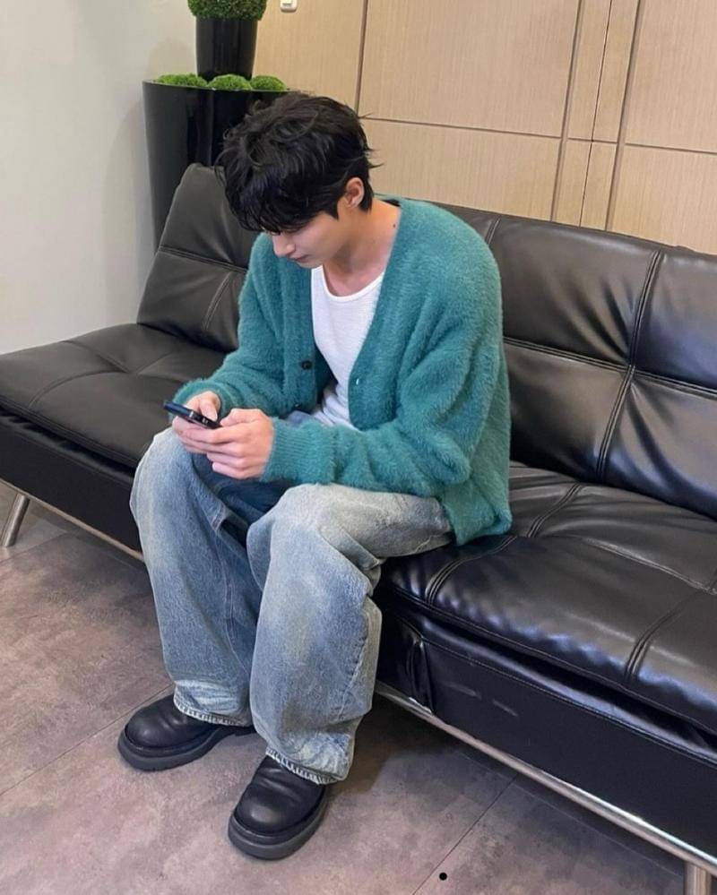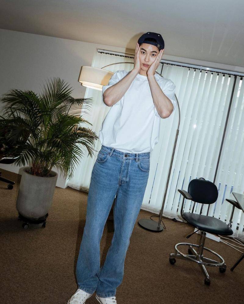 Dijamin, kamu akan merasa nyaman seharian. Pilih juga gaya jeans yang sedikit menonjol, jika kamu ingin terlihat lebih fashionable lagi. Tapi, kalau kamu tidak ingin pusing, kamu tinggal menggunakan wide jeans bergaya sederhana seperti yang dikenakan Woo Seok.