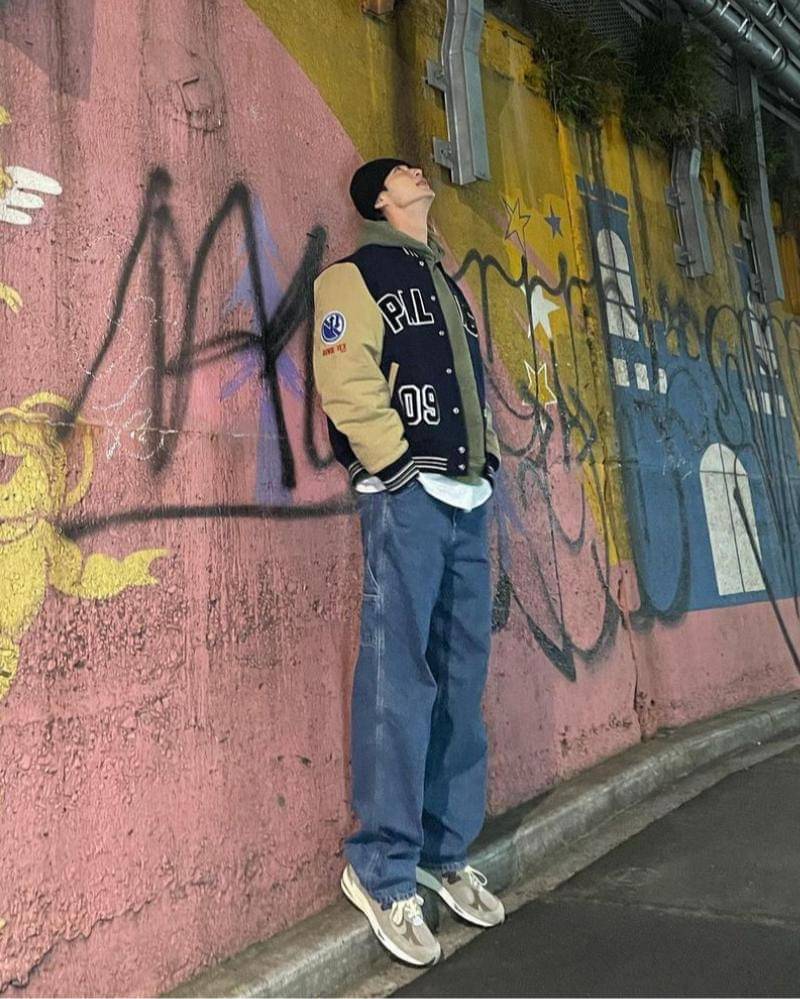 Untuk meniru gaya yang satu ini sangatlah mudah. Kamu hanya perlu memakai kaus yang dilapisi hoodie dan varsity jacket, lalu memadukannya dengan celana jeans.