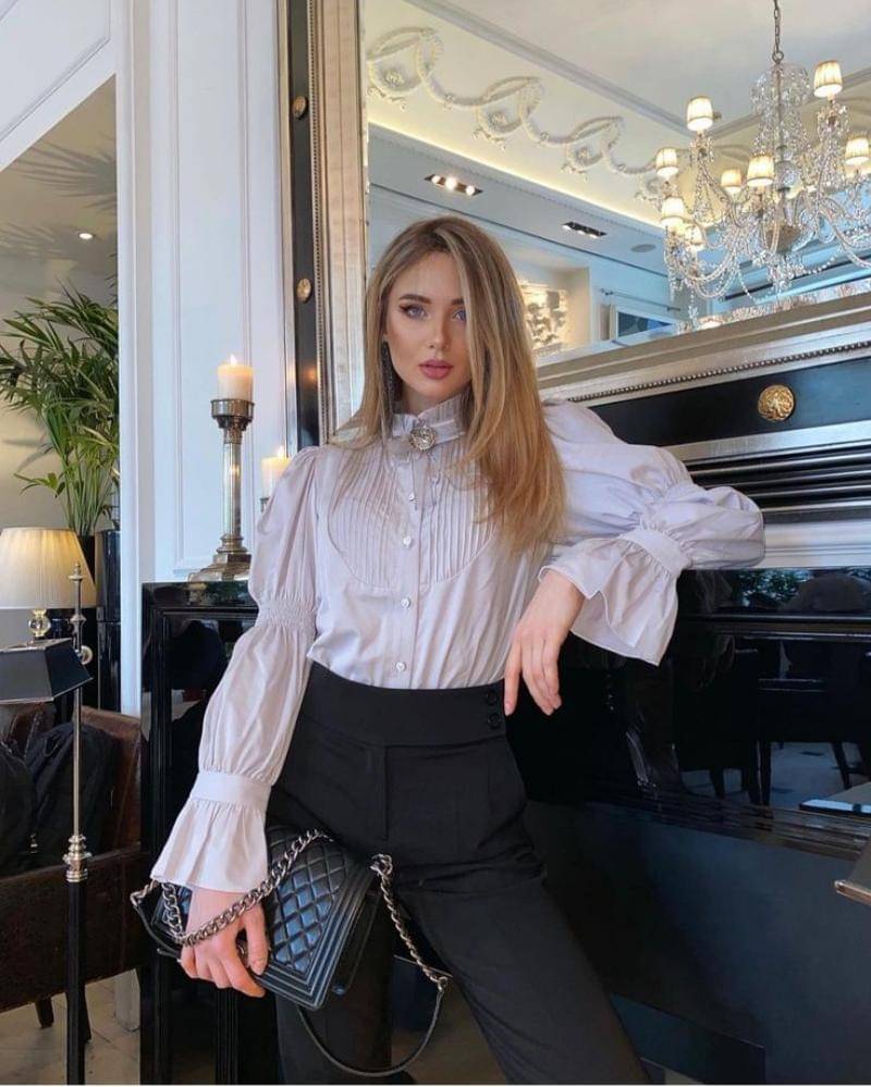 Blus yang mencolok menawarkan cara untuk kembali mengenakan pakaian kantor dengan santai sambil tetap menunjukkan sedikit gaya. Sesuatu yang ekstra, ideal untuk bertransisi dengan lancar dari meja kerja ke ruang makan. Kamu siap deh kalau ada yang ngajakin cabut setelah selesai kerja.