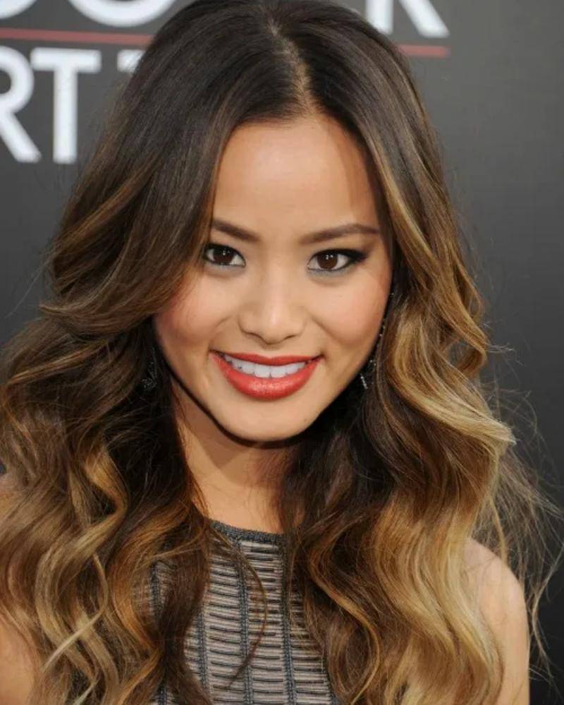 Warna brunette ombre Jamie Chung dengan undertone dingin menawarkan pilihan yang bergaya dan seimbang bagi mereka yang ingin beralih dari pirang ke brunette atau sekadar menambahkan dimensi pada rambut yang lebih gelap. Warna emas yang hangat menciptakan kontras yang indah dan mencegah tampilan keseluruhan terlihat terlalu keras atau datar.