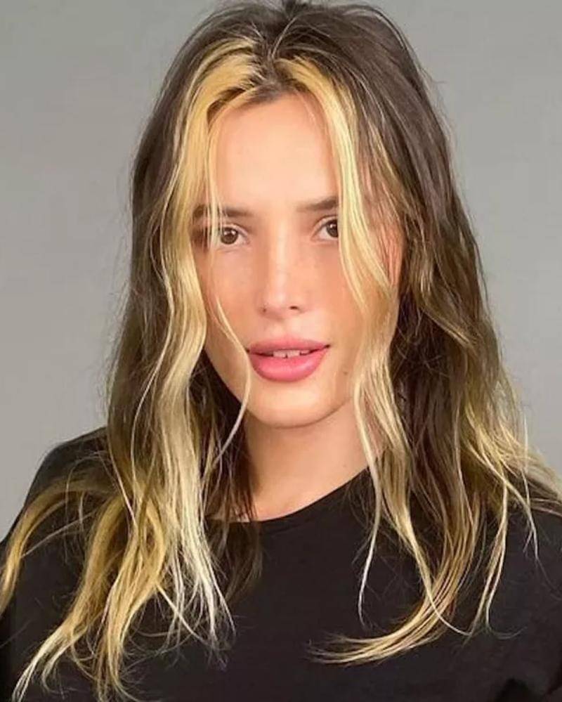 Ombre tidak harus mengikuti gradasi gelap-terang tradisional. Seperti yang ditunjukkan oleh Bella Thorne, gaya ombre yang terinspirasi dari tahun 90-an dengan highlight pirang terang yang membingkai wajah adalah alternatif yang bergaya.