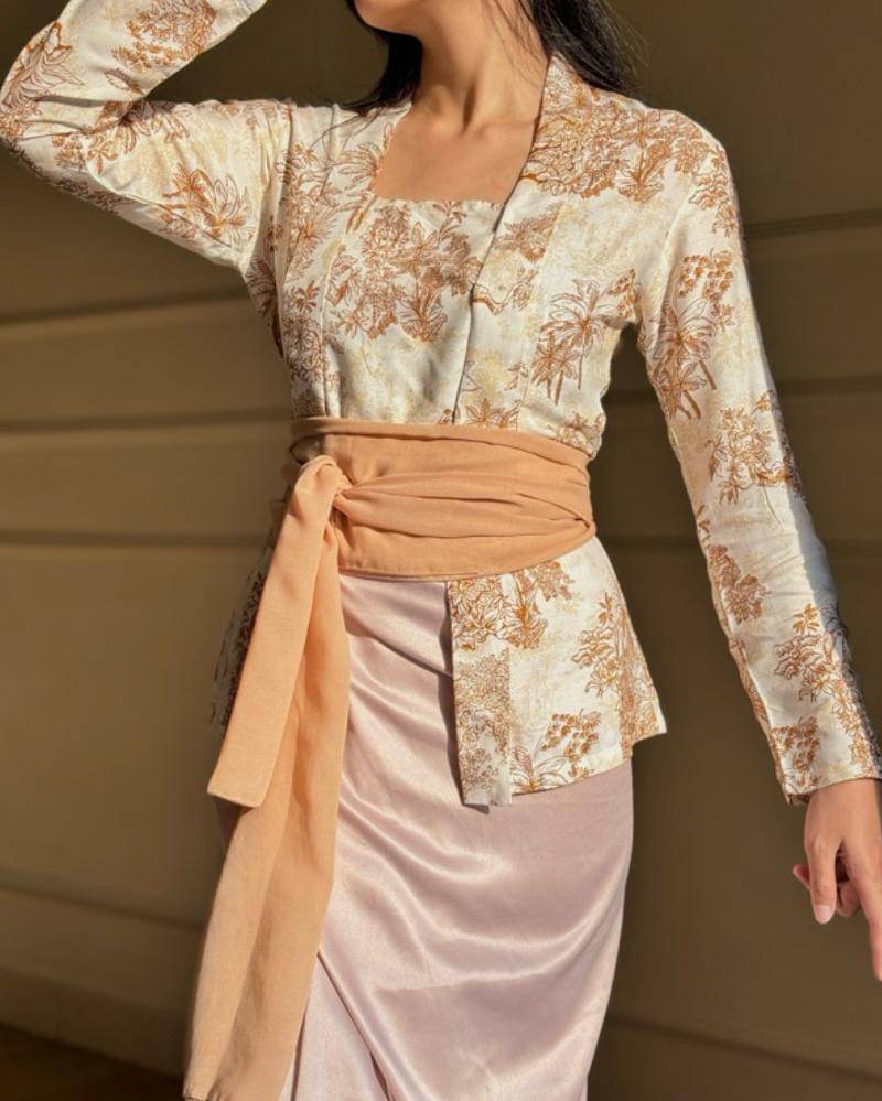 5. Kebaya bermotif pohon kelapa, tunjukkan gaya negeri tropis!