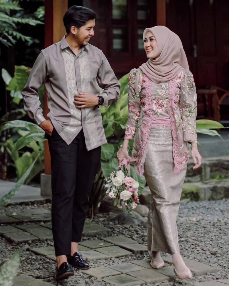 Kebaya berwarna soft pink yang satu ini bisa jadi pilihan kamu kalau ingin menggunakan warna-warna netral, agar mudah memadukannya dengan rok, tas maupun sepatu nantinya. Seperti di gambar, atasan kebaya berlengan panjang ini dipadukan degnan rok putih.