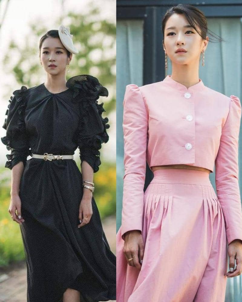 Kamu bisa mendapatkan gaun merah yang bold ataupun tampil manis dengan gaun berpola floral. Tambahkan aksesori dan gaya rambut yang sesuai, dan kamu siap jadi Jang Man Wol modern.