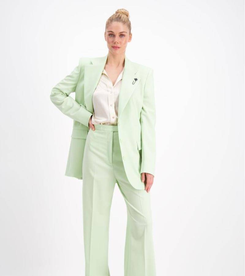 Untuk menciptakan tampilan yang profesional, cobalah kenakan blazer berwarna sage yang dipadukan dengan celana panjang senada ataupun warna netral lainnya.