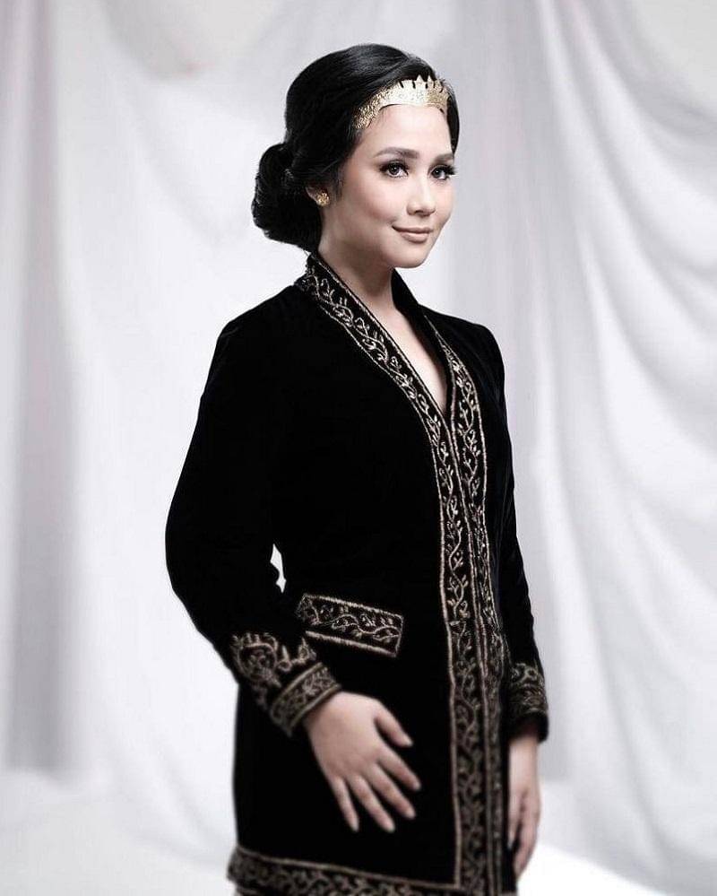 Penyanyi Gita Gutawa tampak pernah mengenakan kebaya beludru hitam untuk salah satu sesi fotonya. Kebaya yang dikenakannya cukup simpel namun terlihat elegan.