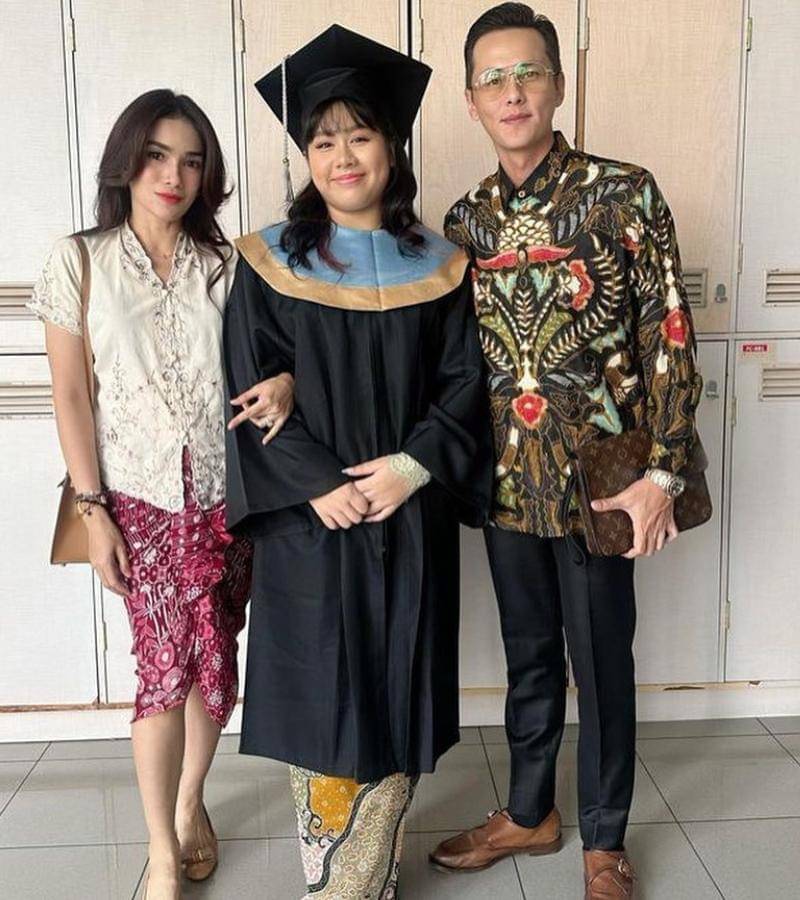 Yuni Shara memilih busana khas Indonesia saat menghadiri acara wisuda sang anak, mulai dari gaya rambut hingga pemilihan pakaian yang dikenakannya.